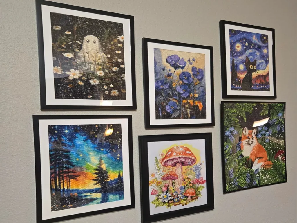 If left out in the open, finished canvases could lose their drills. When you’re done, put a clear sealant over the surface. Sealing keeps drills safe and free of dust. If you want to save your art for a long time, you could frame it with glass. If you do it right, your masterpiece will shine for years.